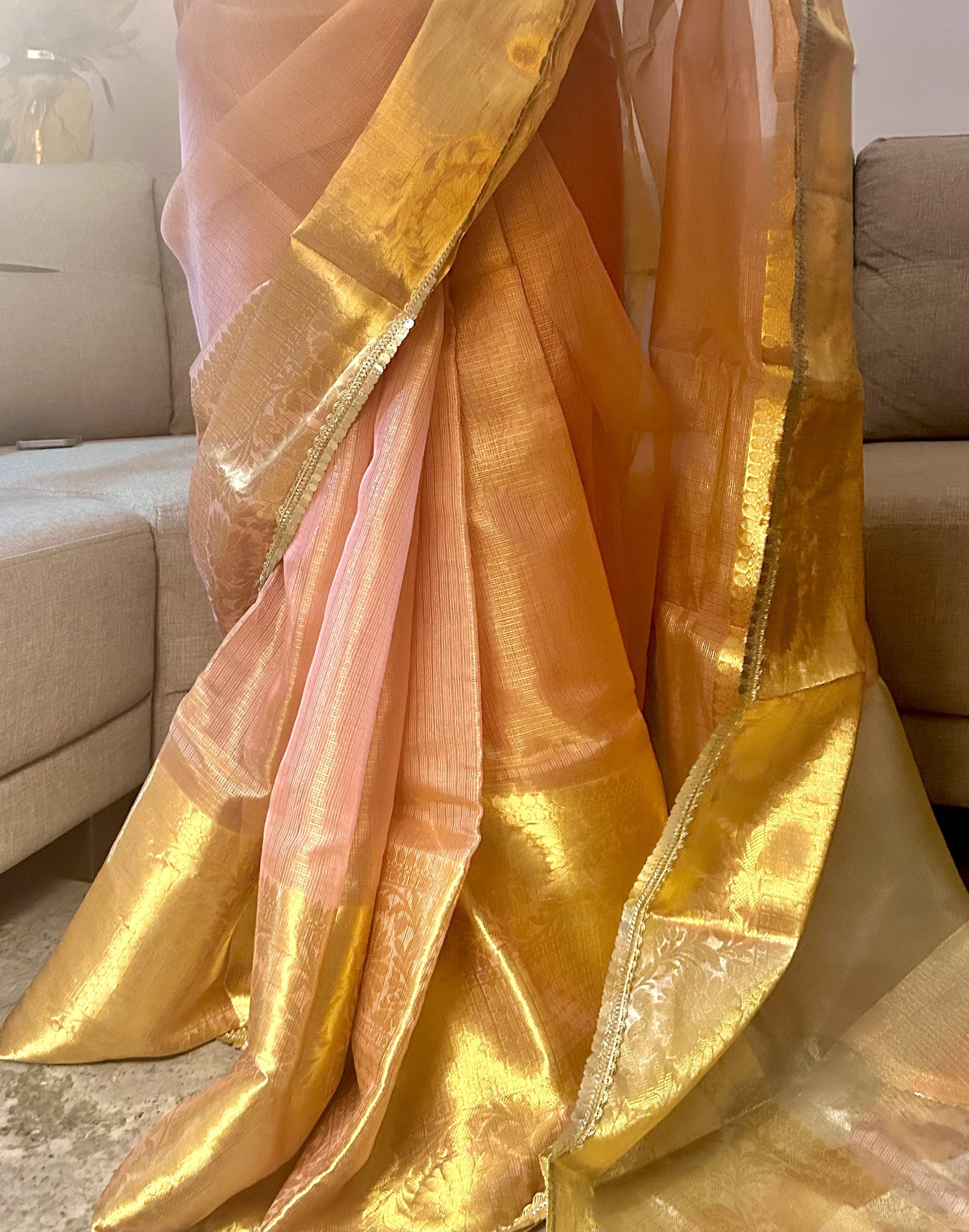 Saree Colour: Peach with Golden sheen